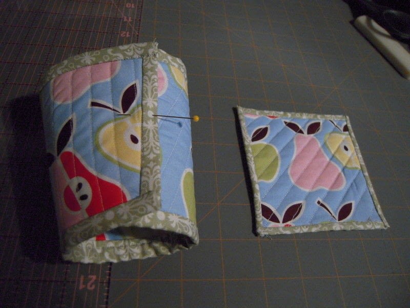 Repeat sewing as for cup cozy. Sew bias tape around edges.